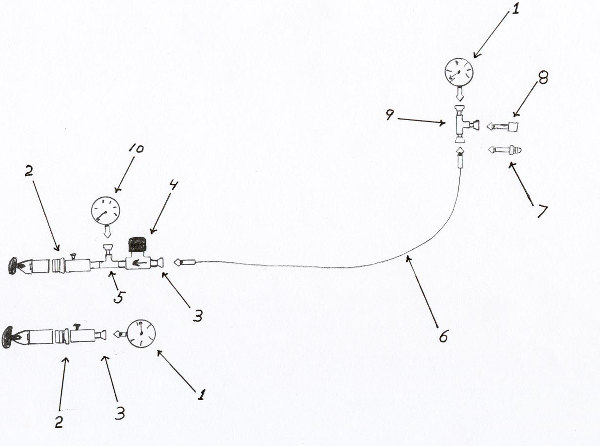 Material needed: (2) converto tank checker (global) (1) line/filler valve 1/4" fnpt inlet x 1/4" mnpt outlet (1) 0 to 3000 psi gauge in 10 lb. increments or a digital gauge (2) tee 1/4" fnpt SS extra heavy (1) each 02 & He tank nipple & nut with 1/4" npt (1) 6ft Long 1/4" I.D.hose with 1/4"mnpt on each end SS / hose must be suitable for oxygen and rated to 4500psi (7) Aeroquip 5602-4-4S with 1/4" fnpt (6) Aeroquip FD56-SERIES-4 with 1/4" fnpt (7) 1/4" male hex nipples SS extra heavy The Aeroquip are the quick disconnects and are plated steel with standard orings and must be 02 cleaned. They are also "checked" so be sure to bleed everything down before breaking the gauges off or they will hold pressure, if you want SS with viton orings you need (7) Swagelok SS-QF4-S-4PF & (6) Swagelok SS-QF4-B-4PF with 1/4" fnpt. Everything must be 02 cleaned & any lubricants or tread sealant that are used must be safe to use with oxygen. This is what I have made for me to use and should be used as only a guide . Caution: MAY CAUSE INJURY OR DEATH BUILD AT YOUR OWN RISK - USE AT YOUR OWN RISK / SUGGEST YOU TAKE A MIXING CLASS BEFORE BUILDING AND USING!